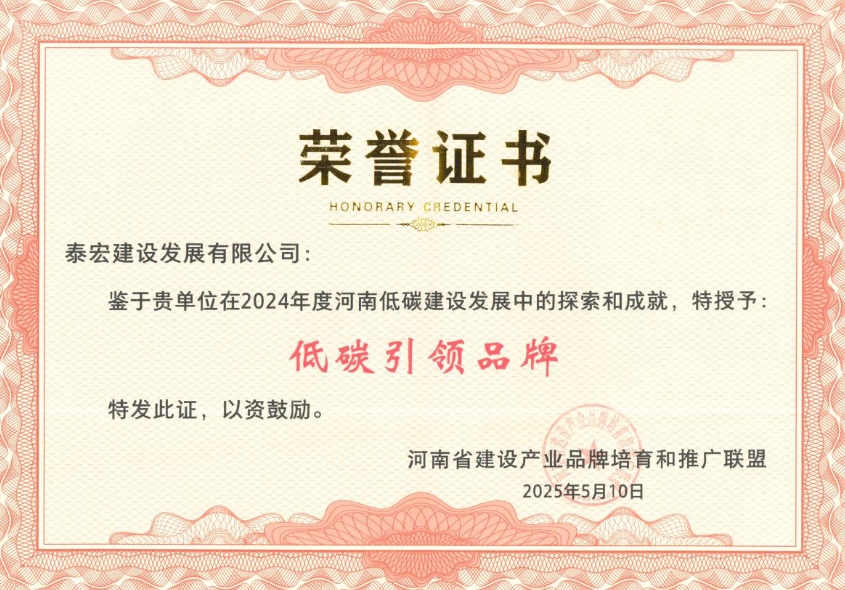 泰宏建设荣获2024年度河南建设产业“低碳引领品牌”称号